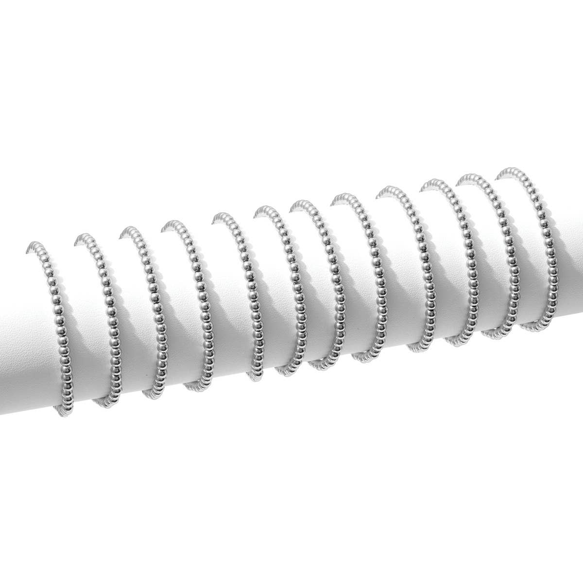 This Silver Bead Stretch Bracelet adds a touch of elegance to any outfit. Made with 4mm Brass beads and 18k Rhodium Plated Brass Base, this 6.5" stretch bracelet is both stylish and durable. Perfect for any occasion, it's a must-have accessory for any jewelry collection.