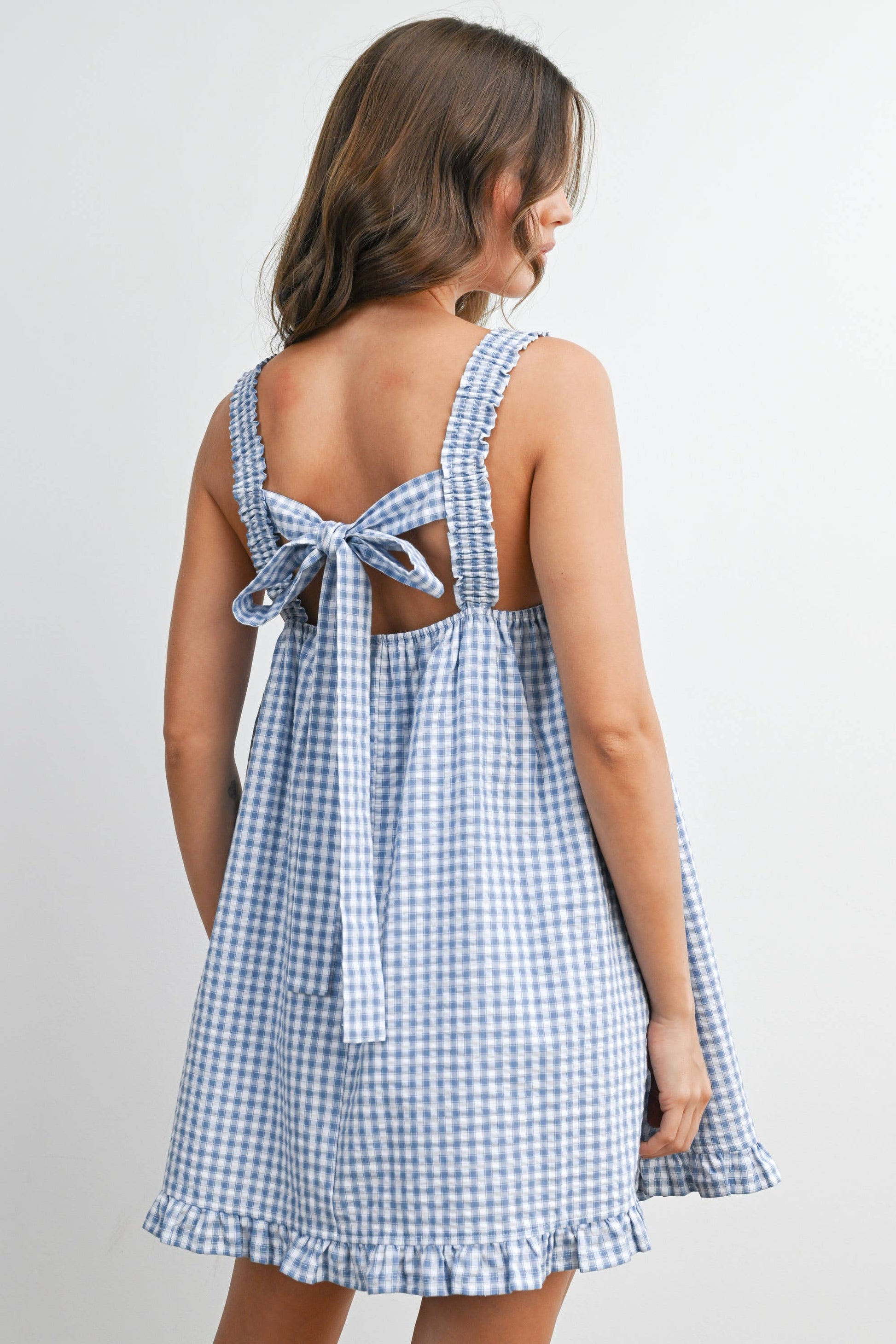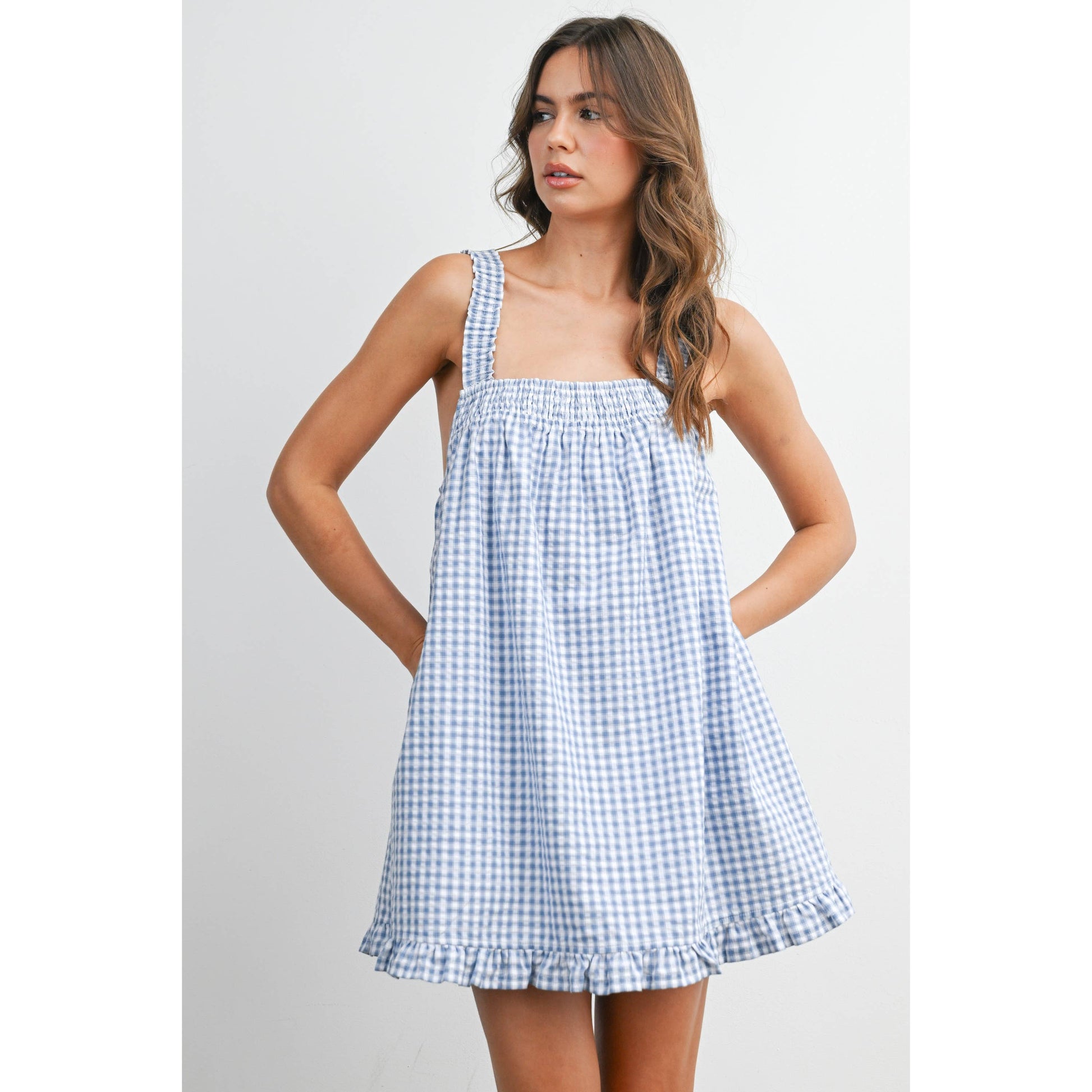 Capture a charming, vintage-inspired look with the Back-Tie Smocked Yoke Ruffle Hem Dress. This delightful dress features a classic gingham pattern, adding a touch of timeless elegance to your wardrobe. The smocked yoke ensures a comfortable and flattering fit, while the back-tie detail adds a unique and adjustable element. Finished with a playful ruffle hem, this dress is perfect for picnics, garden parties, or any sunny day adventure.