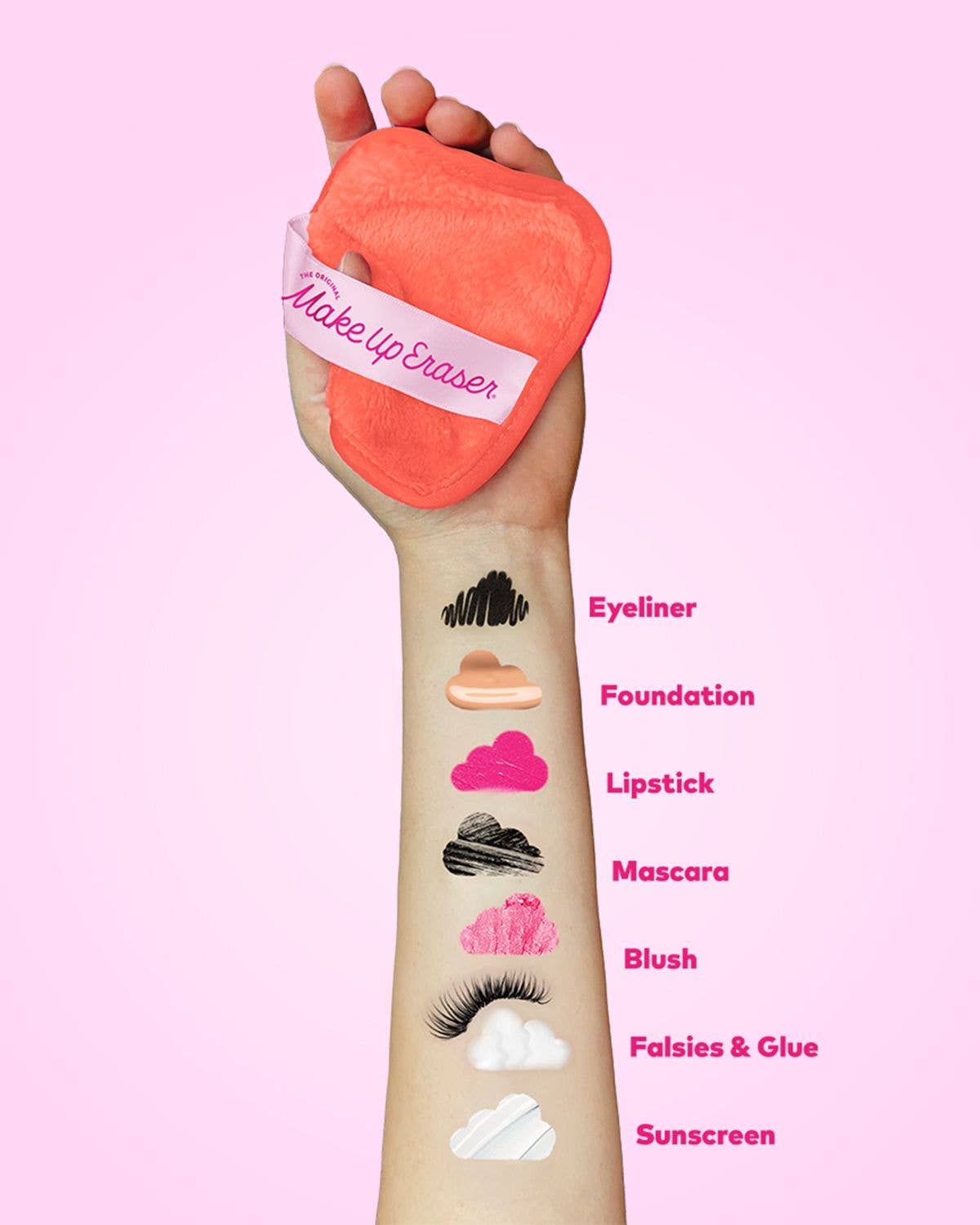 Erase all makeup with JUST WATER™ including waterproof. Our patented, water-activated, cloud-soft fibers gently & easily remove all makeup & sunscreen from pores. 2 in 1 benefit: one side erases makeup & one side exfoliates skin.