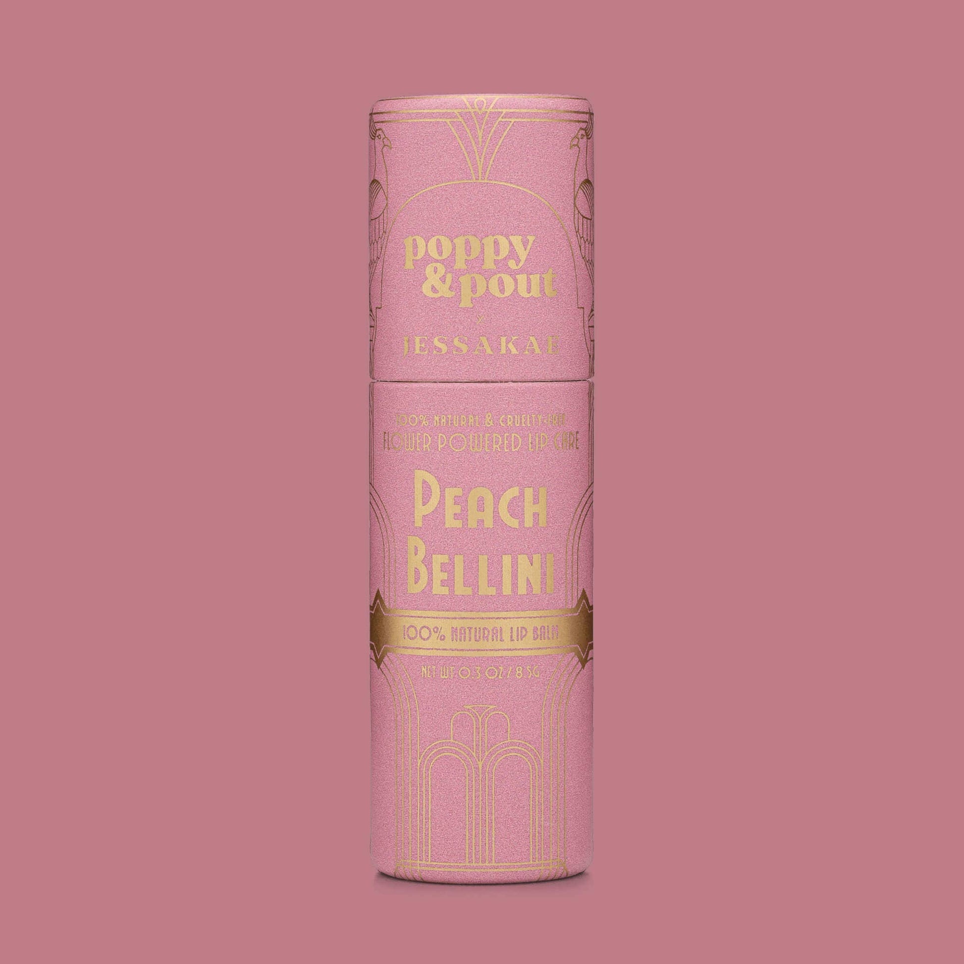 Float into the spotlight with this lip balm that’s as radiant as a sparkling flute of peachy bubbles. Infused with our 100% natural ingredients and signature super-smooth formula, it glides on like a dream and leaves lips soft, sweet, and ready for their close-up. Part of our special collaboration with JessaKae for the Oz Ball this September, our Peach Bellini Lip Balm is your invitation to step into the glow of enchantment.