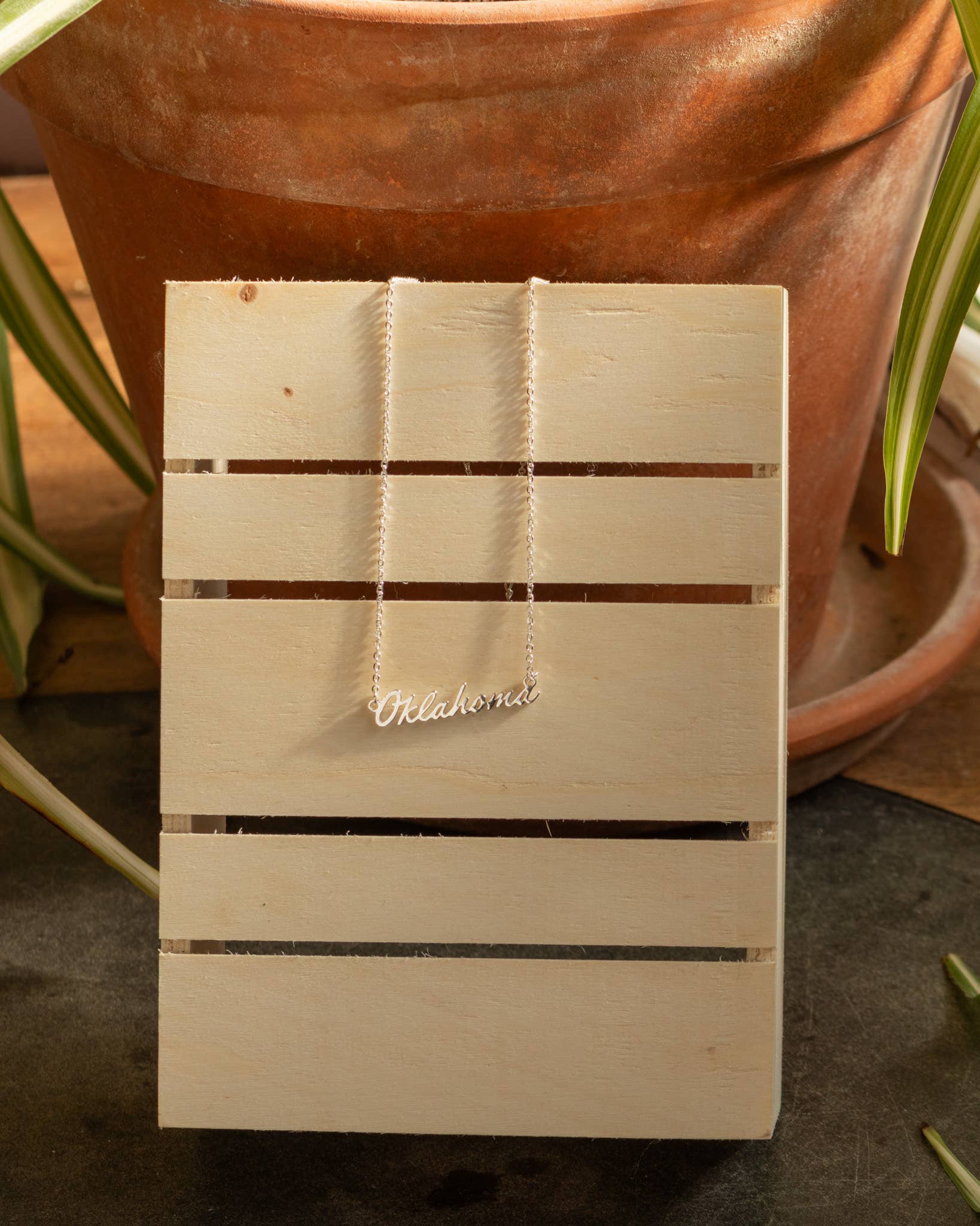 Celebrate your connection to Oklahoma with this elegant silver necklace, measuring 16 inches for a comfortable everyday fit. Each piece features original artwork designed in-house by Shop Good in Oklahoma City, making it a truly unique accessory. We're committed to responsible craftsmanship—all materials are sourced from ethical manufacturers who uphold socially responsible production practices. Wear it with pride, knowing your purchase supports thoughtful design and sustainable practices.