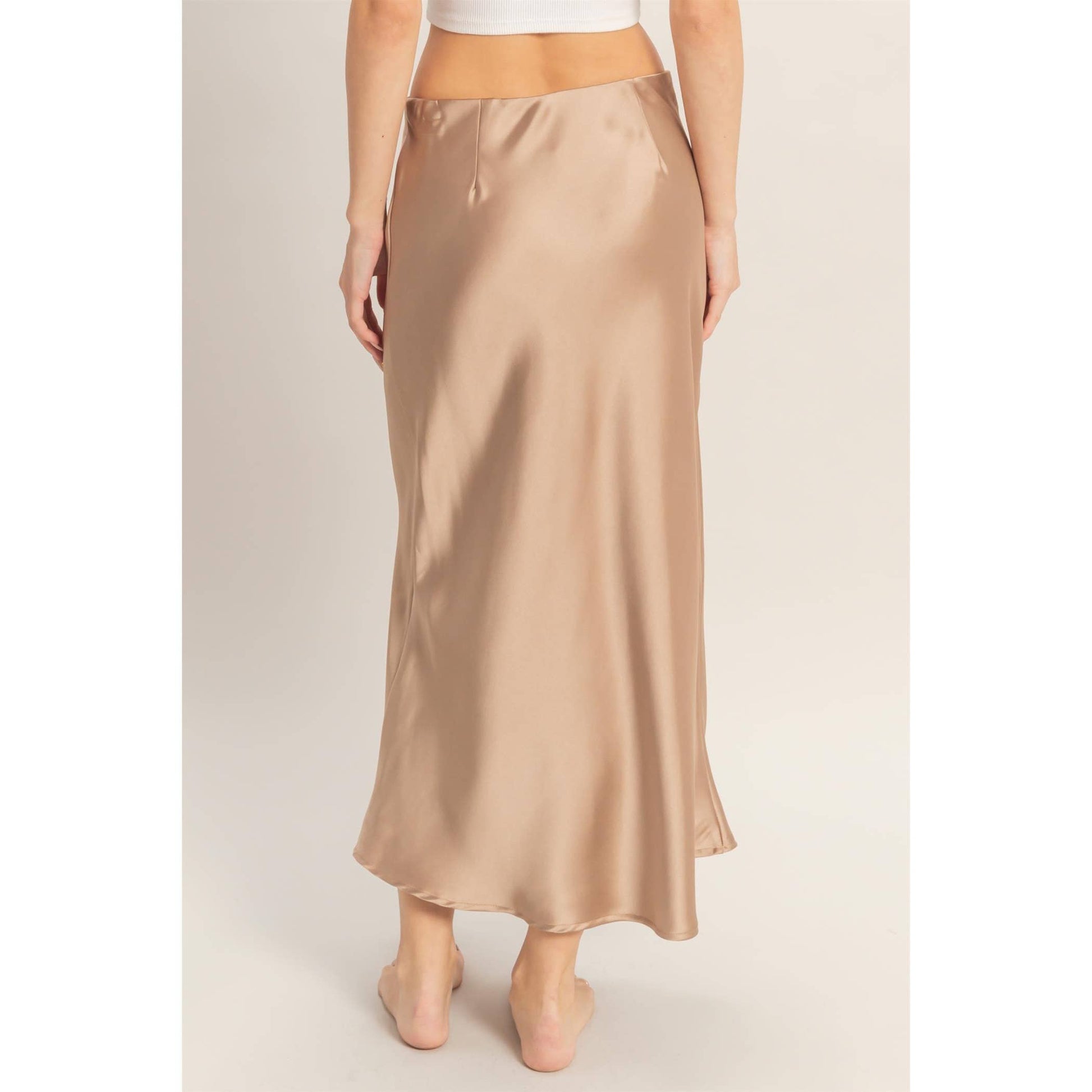 This luxurious satin skirt features a high-waisted fit and a sophisticated bias-draped A-line shape, giving it a subtle, flowing hemline. Pair with a fitted silk blouse and stiletto heels for a chic, polished, and undeniably sophisticated evening ensemble.